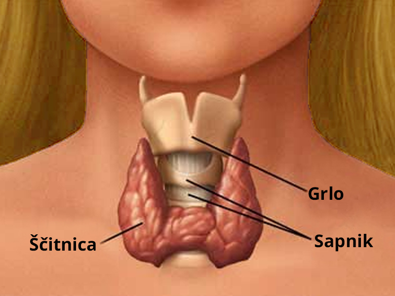 The thyroid is a butterfly shaped endocrinous gland that consists of two sections connected in the middle by a bridge. It is situated in the lower neck in front of the trachea. An enlarged thyroid causes pressure on the trachea, throat, esophagus and larynx and can cause difficulties in swallowing and breathing. The thyroid produces the hormons thyroxine and triiodothyronine which have a major role in the body’s metabolism. It also produces calcitonin which in conjunction with parathormone of the parathyroid glands regulates the level of calcium in the blood. Increased levels of thyroid hormones accelerate the metabolism while a lack of hormones slows it down. After surgical removal of the thyroid gland its functions are replaced by a small daily pill with thyroid hormones which needs to be taken for the rest of life.